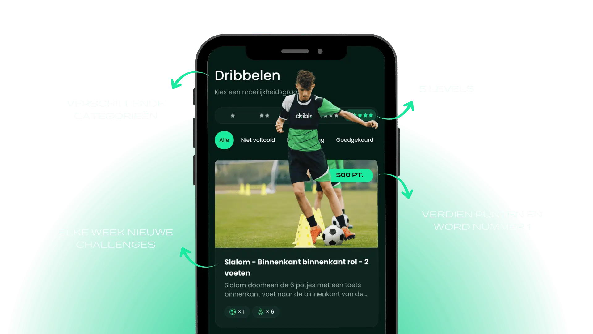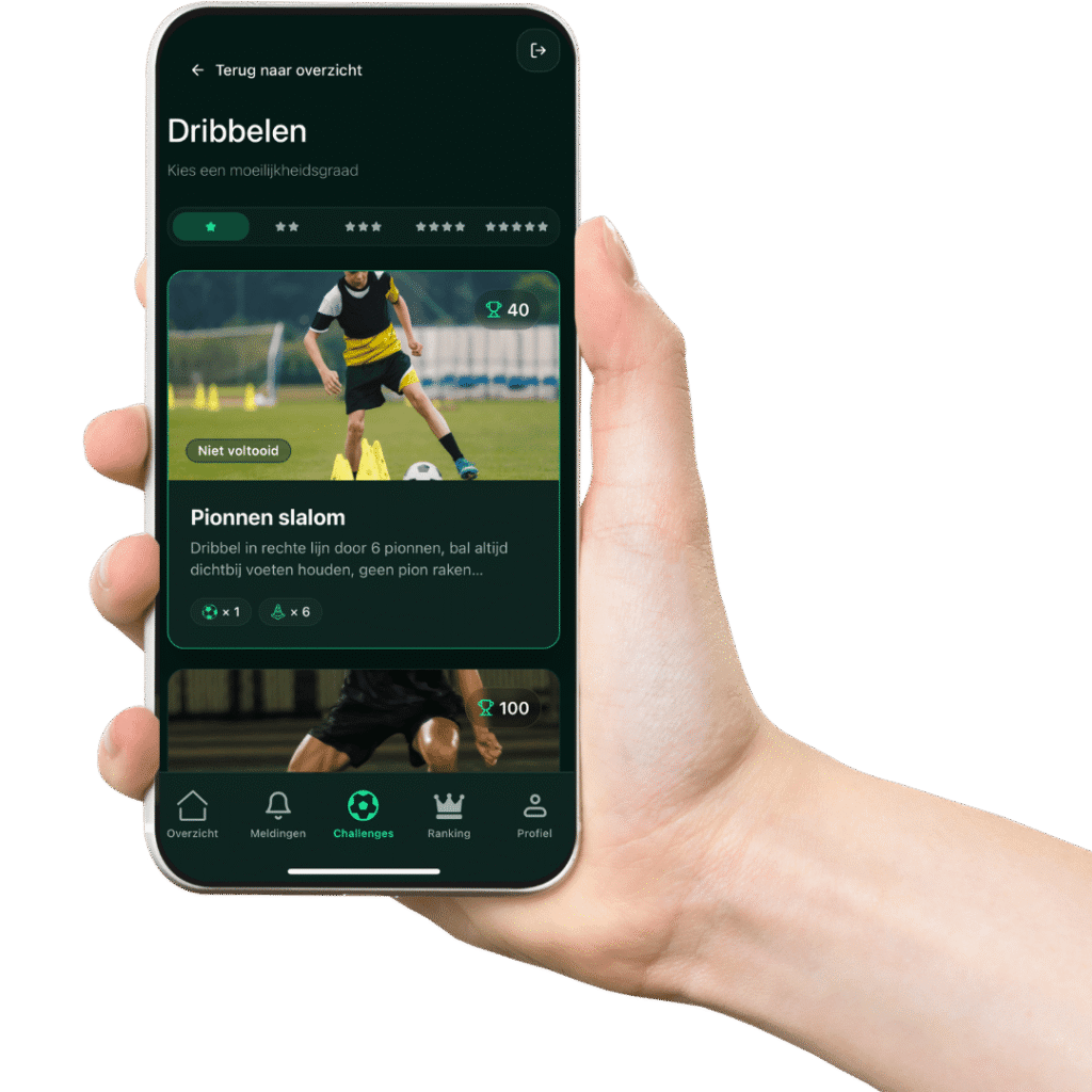 Ontdek alles wat DRIBLR te bieden heeft: uitdagende challenges, professionele feedback, rankings, en een compleet overzicht van je voortgang.