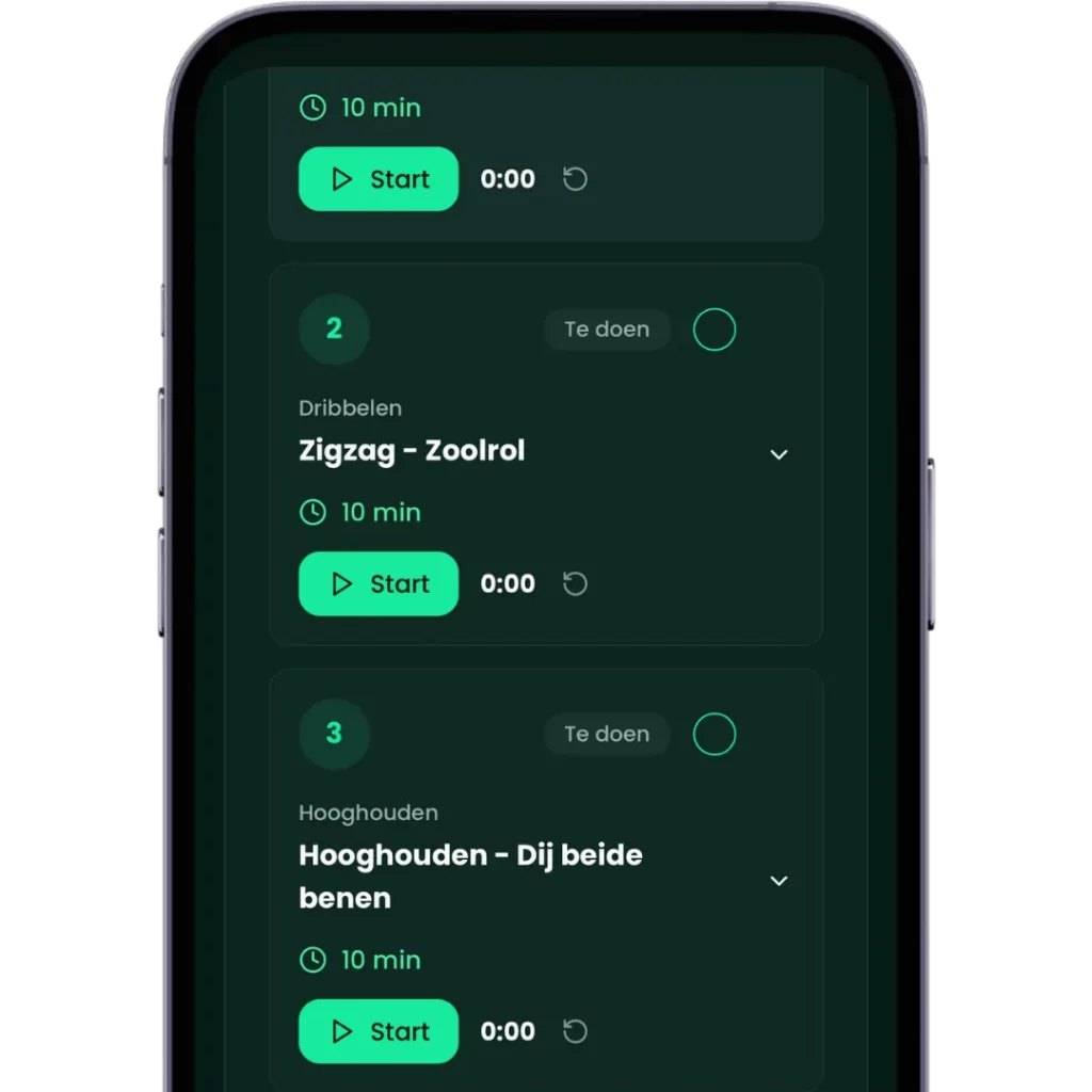 Kies uit honderden oefeningen in dribbelen, trappen, passen en hooghouden.